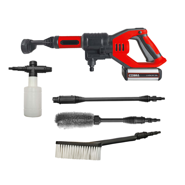 The PW18024V includes a multitude of attachments which will quickly and effectively clean cars, bikes, patios, garden furniture and much more. The inclusive 24v battery is also compatible with the entire range of Cobra 24v garden tools.