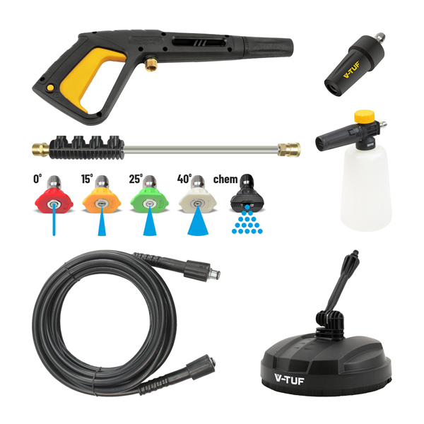 | Hose Length | 5m | Tools Inc | Foam Application Nozzle & Bottle, Turbo Nozzle & 5 x Spray Nozzles (0°, 15°, 25°, 40° & Chem Application) |
