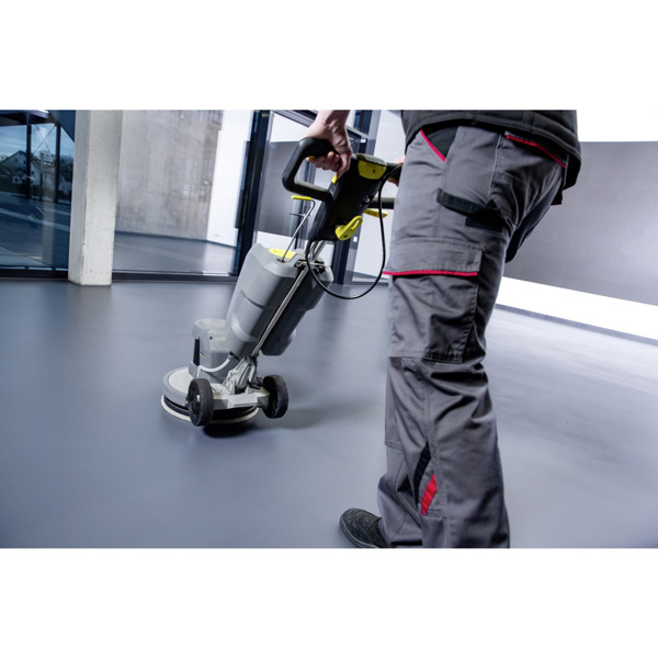 With a working width of 43 centimetres, variable rotational speed (150 or 300 rpm) and a powerful 1500 W motor, the single-disc Karcher BDS 43/DUO C permits various fields of application.