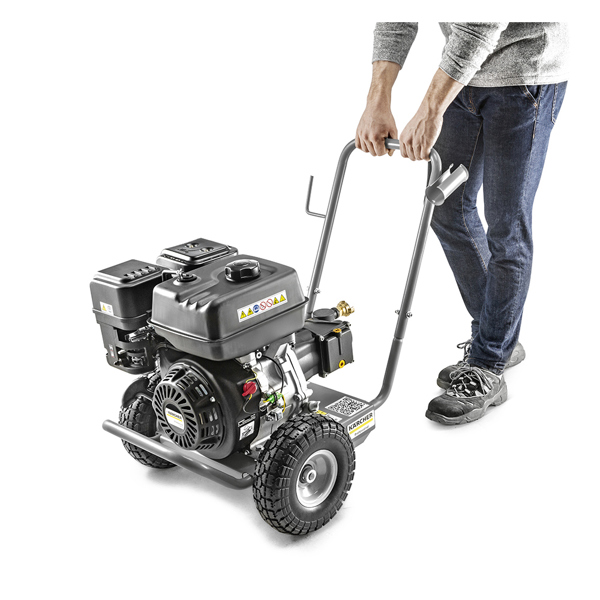 Thanks to the powerful EU STAGE V petrol engine, which eliminates the need for an external power supply, and equipped with a robust tubular steel frame and puncture-proof wheels, the HD 9/25 G Classic is suitable for heavy-duty use on construction sites, in handicraft, in municipalities or by building service contractors.