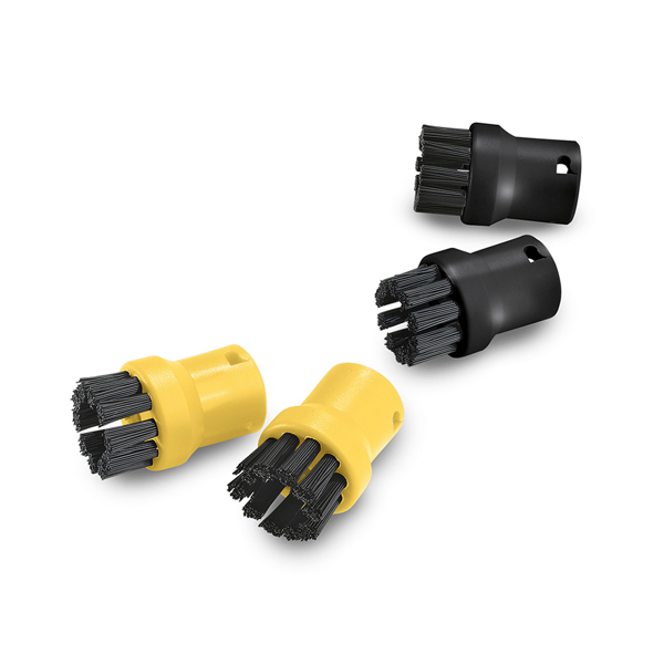This Karcher steam cleaner round brush set contains 4 round bristle nozzles for detail steam cleaning. This pack contains 2 yellow brushes and 2 black brushes allowing you to colour code between cleaning applications / rooms to prevent cross contamination.
