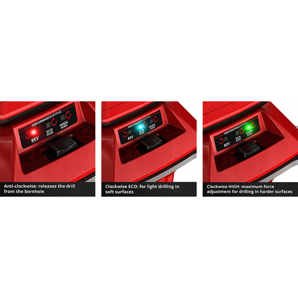 - 3 different modes: anticlockwise, clockwise: ECO & HIGH POWER