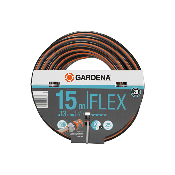 The 15m GARDENA Comfort FLEX Hose with Power Grip Profile guarantees the perfect connection between hose and hose connector. Thanks to new technology, these interlock like toothed wheels for a more secure connection.