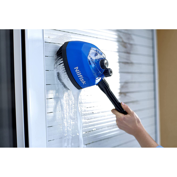 The motorhome bundle includes a Nilfisk Multi Brush Kit Featuring 3 interchangeable brush inserts the multi brush kit offers cleaning solutions for vehicle bodywork, outdoor furniture & wheel rims as well as windows & other delicate surfaces. The multi brush also features an inbuilt detergent tank allowing chemical application direct from the brush during cleaning as well as a detergent regulation dial to control the amount of detergent applied.