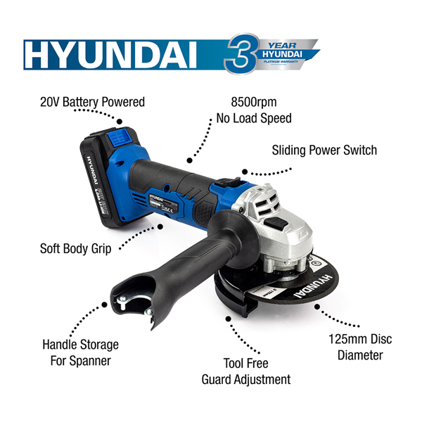 - Hyundai HY2179 20V Cordless Angle Grinder