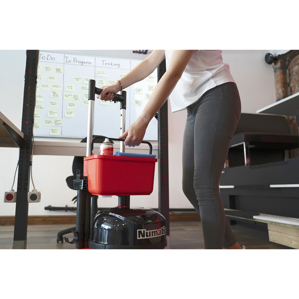 The Numatic PBT230NX is based on Numatic's unique ProVac professional model with all the exceptional user convenience, telescopic handle and 200mm soft ride transit wheels. The integrated storage caddy for cleaning materials and can equally be the most convenient way of keeping a second battery on board, close at hand to extend the operation time.