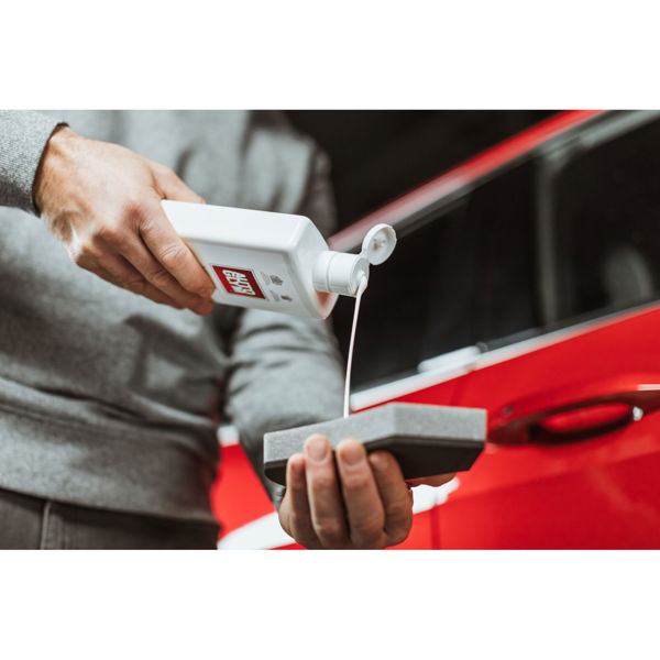 - Apply a thin layer to the paintwork in overlapping circles to ensure even coverage. Increase pressure over any marks, scratches or dull patches. Allow to dry. Do not apply to unpainted rubber or plastic trim.