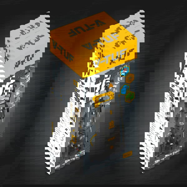 The V-TUF V5 240 X2 compact pressure washer comprises of all the cleaning power and energy saving efficiency you would expect, as well as an innovative design for smaller storage areas and easier manoeuvring thanks to its heavy duty wheels, and improved aluminium telescopic handle. Guaranteed to cut through deep dirt, grime & dirt, leaving surfaces looking new, superb, and most importantly
