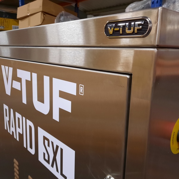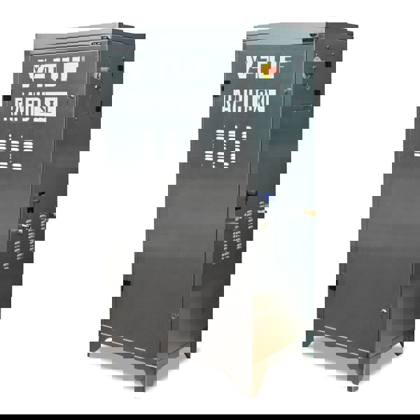 V-TUF RAPID SXL 110 volt - Stainless Steel Cabinet HOT water pressure washer. Performance: 1500PSI (100BAR) at 12 litres per minute. The V-TUF RAPID SXL has been developed with pressure washer owners and users to the correct specification to cope in demanding conditions such as: weather, multi operator issues and theft issues. Beneficial features include: V-TUF XHDM300SS Super Series Pump Stainless Steel Tamperproof & Lockable Cabinet - The V-TUF RAPID SXL high quality stainless steel cabinet, has saved many owners the disapointment of having a rusted unsightly pressure washer within the first two years - "The V-TUF RAPID SXL stainless cabinet is a very worthwhile investment!!" Quiet running with vibration dampening. Key lockable control panel Control panel operator controls functions include: 1. Machine ON/OFF; 2. Hot water ON/OFF; 3. Detergent ON/OFF. Fuel efficient, Clean burn diesel fired boiler Latest Frost Protection technology - fire proof cabinet insulation and uniform cabinet heating. Fire safety shut off fuel valves on the external fuel supply machines Pre-set tamperproof controls The cabinet has floor mounting bolt holes Low Water Sensor & WRAS BS 1212 COMPLIANT Leak Detection Monitor Flame Failure Control on diesel fired boiler (240 and 415 volt models only) Accessibility of all service components make servicing quick and easy. Integral Fuel Tank 43 Litre nautical fuel tank, shockproof and anti-cut Delayed ' Total Stop' Auto Shut Down Delivery time: 20 - 30 working days. All machines are Pre-delivery inspected and tested before dispatch. We aim to give you peace of mind, for trouble free operation from the start. Please confirm before ordering if you are going to feed from a bulk or external diesel tank. Why Buy? Superior Build Quality - 304 Stainless steel 100Bar 12L/min - 110V - V-TUF Super Series Pump iDPS - Intelligent Digital Protection System 43L Fuel tank - Can use HVO Diesel Fuel - Save our planet! BlueBurn - Super Efficient Dual Heat Exchange Boiler - 100C at Full Pressure Convection Fan Heater - Protects Against Frost 10M Heavy Duty Hose with MSQ fittings - Heavy Duty Gun and Lance Dimensions: 815W x 560Lx 1600h