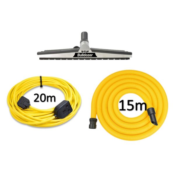 Sweeping up exposes you to 4 times more dust than the original task. Features: Fits Machines with 38mm accessories 450mm Bulldozer Sweeper Head - Aluminium - Easy Glide Wheels 15 Metre Yellow Hose Flexible Crush Resistant Hose 20 Metre "Motor Saver" Extension cable - 240V Fits NEW MAXi 50, NEW MAXi 80, MAMMOTH XLR, MAMMOTH STAINLESS