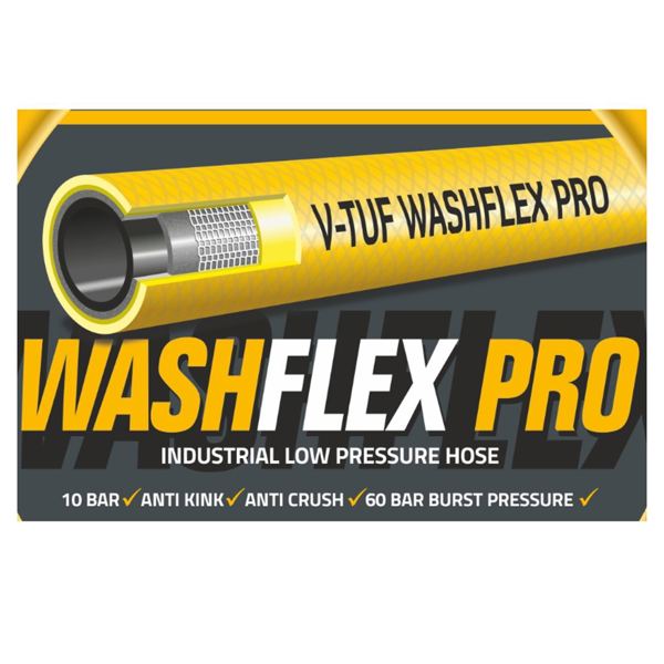 WASHFLEX PROFESSIONAL WATER HOSE BF34 is a popular anti kink industrial hose pipe (an ideal pressure washer feed hose). It is also used in agricultural hose applications and by the discerning user as quality garden hose. WASHFLEX PROFESSIONAL WATER HOSE BF34 is a WINNER due to its durability, flexibility, wear resistant outer skin and anti-crush design. - WASHFLEX PRO WATER HOSE has a working pressure of 10 bar ideal hose to connect to taps with standard mains pressure or low pressure . The hose has been tested to burst at 50 bar (five times the recommended working pressure). - The internal diameter of the WASHFLEX BF34 hose is 19.0mm and the outside diameter is 24.5mm. - WASHFLEX BF34 hose is compatible with DURAKLIX KCQ , NSQ , GKC and Hozelock style fittings which fit the Tricoflex and Hozelock anti kink hose. WASHFLEX BF34 is highly flexible with an excellent bend radius and remains flexible in freezing conditions. - WASHFLEX BF34 is Phthalate Free, Phenol Free, Phytotoxic Free Material (Plant Friendly material) and is made from virgin materials which is the secret of its durability. - The WASHFLEX BF34 is REACH approved which ensure that the water and environment is not contaminated. WASHFLEX BF34 is manufactured in Great Britain Why Buy? Made for Professionals - Commercial Specification Super Flexible, rugged construction Virgin Materiel - Stays Soft In Winter Kink Resistant - Excellent Bend Radius UV Resistant - Maintains Structure In Summer Crush Resistant - Keeps its shape when driven over Smooth Outer Cover - Excellent abrasion resistance -15C Min Temp, 60C Max Temp 60 Bar Burst Pressure Made in UK See VIDEO "the preferred choice in horticulture!" Coupling ranges to suit this V-TUF WASHFLEX PRO hose: CAP & TAIL - LP SCREW COUPLINGS GKC - CLAW COUPLINGS HOSE CLAMPS "JUBILEE CLIPS" KCQ - LP QR COUPLINGS NSQ & PSQ - LP QR COUPLINGS