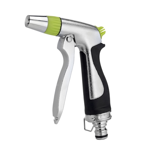 - Metal constructed & nickel plated spray gun with on-off trigger and adjustable spray jet. Comes as s
