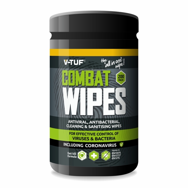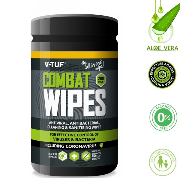 V-TUF COMBAT WIPES - TUB OF ANTIVIRAL & ANTIBAC WIPES -200
